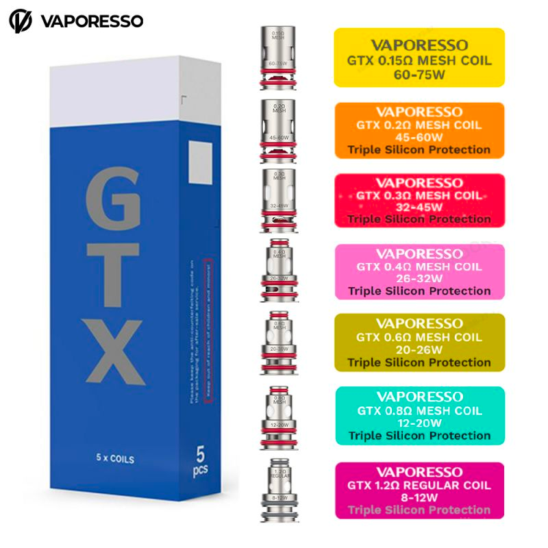 Résistances Vaporesso GTX – Saveurs optimales & production de vapeur